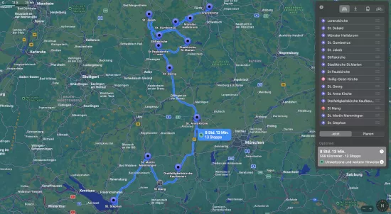 Der Orgelreiseweg Franken-Schwaben führt von Nürnberg bis zum Bodensee. Ob mit dem Auto, dem Fahrrad oder zu Fuß: Landschaft und Musik laden zum Genießen und Entspannen ein.